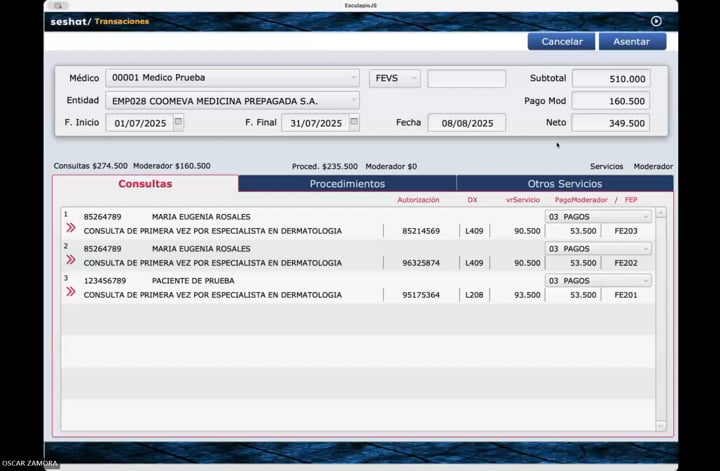 Al crear una transacción, los servicios que se muestran o relacionan cumplen con las siguientes condiciones.